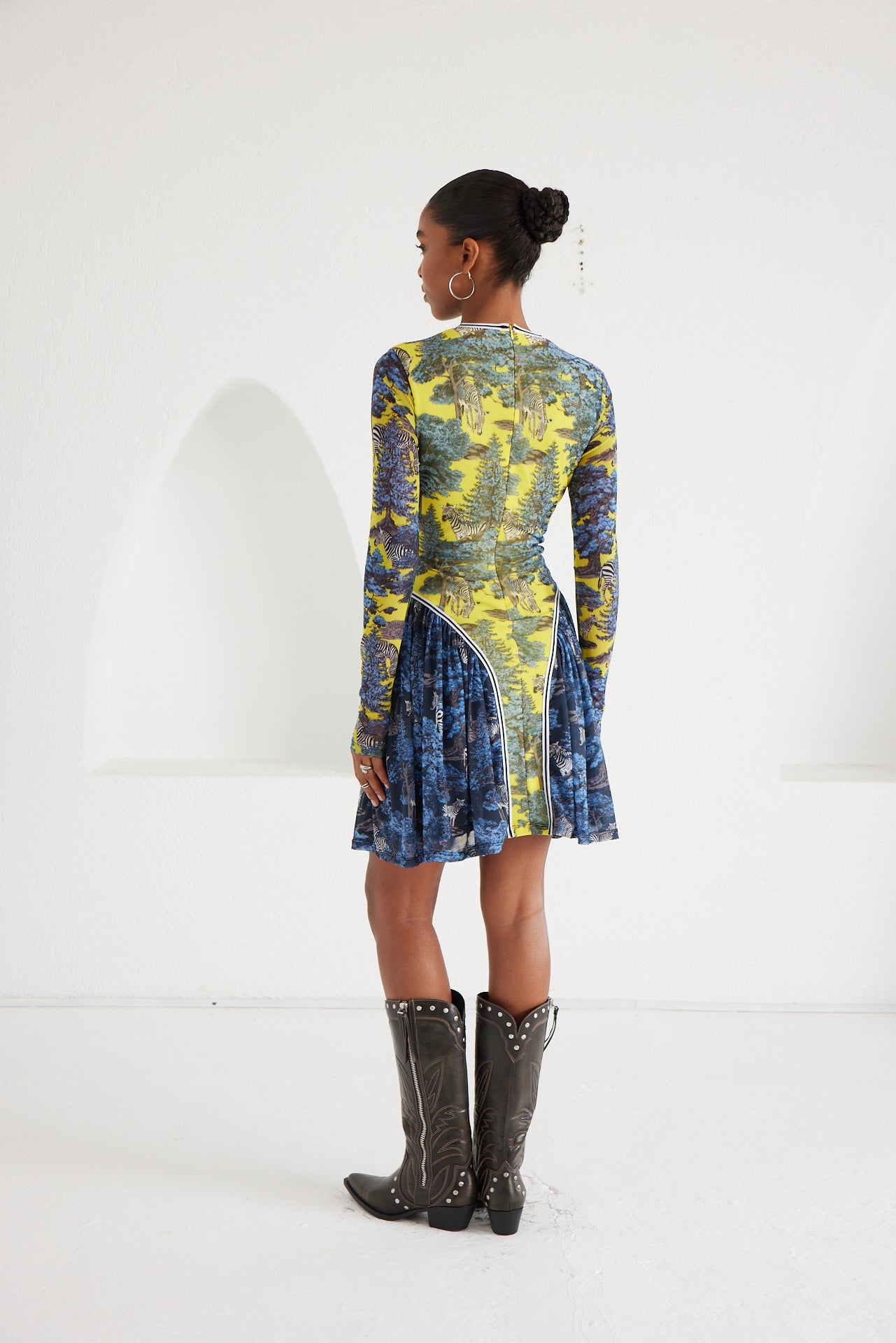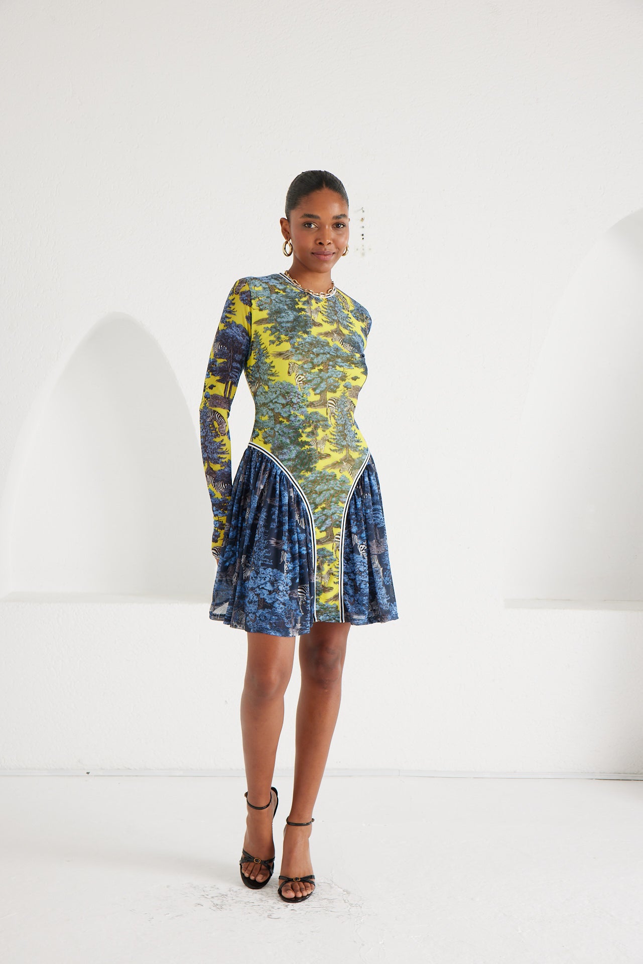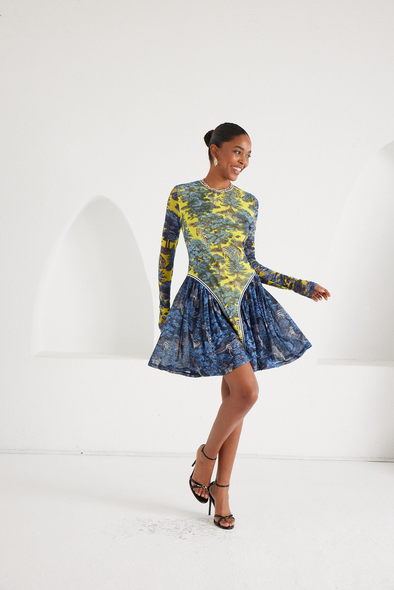The Dream Safari Mini is a spirited sporty mesh dress that channels playfulness and power in equal measure. With its fitted bodice, contrast seaming, and sculptural skater-style skirt, this silhouette brings energy to every step. Dress in freedom to DREAM, wear your story, wear BIAGELI.