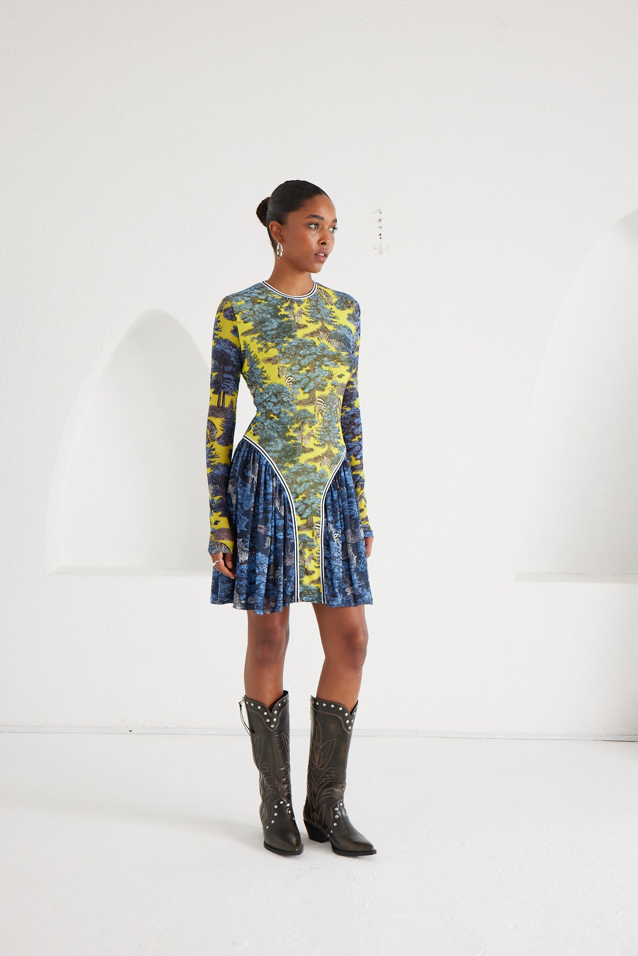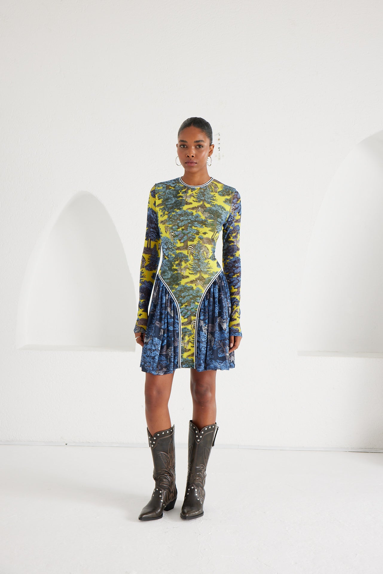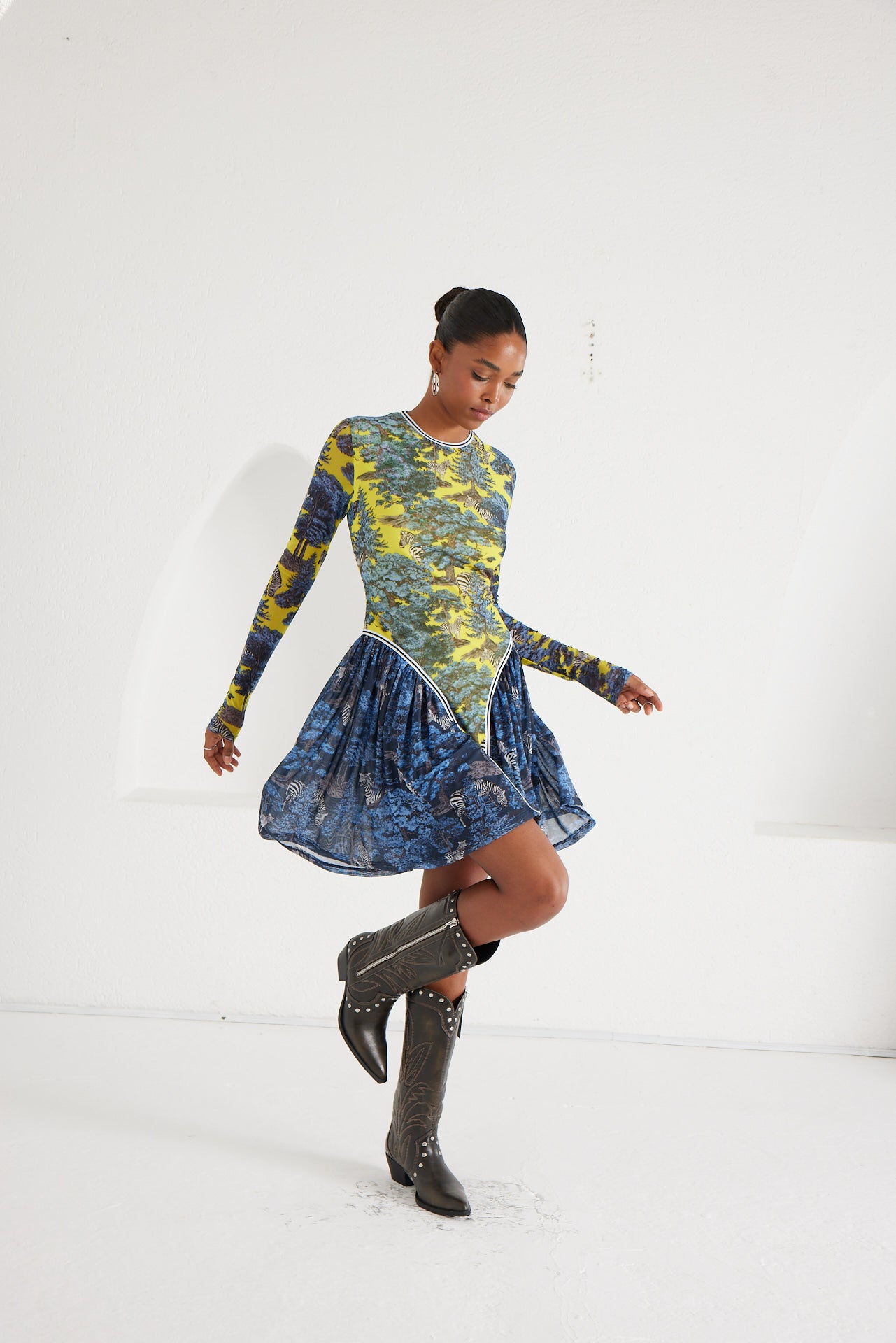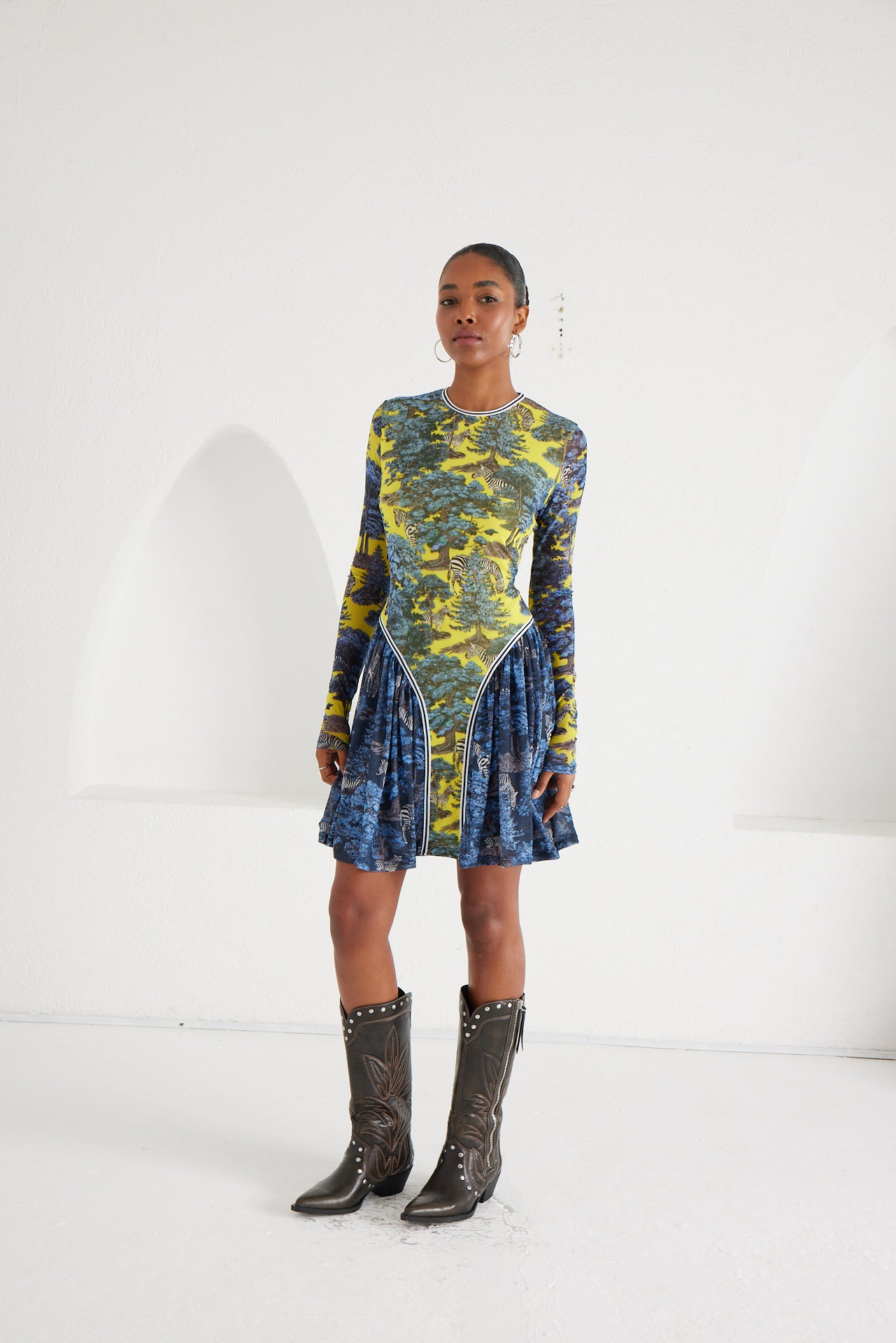 The Dream Safari Mini is a spirited sporty mesh dress that channels playfulness and power in equal measure. With its fitted bodice, contrast seaming, and sculptural skater-style skirt, this silhouette brings energy to every step. Dress in freedom to DREAM, wear your story, wear BIAGELI.